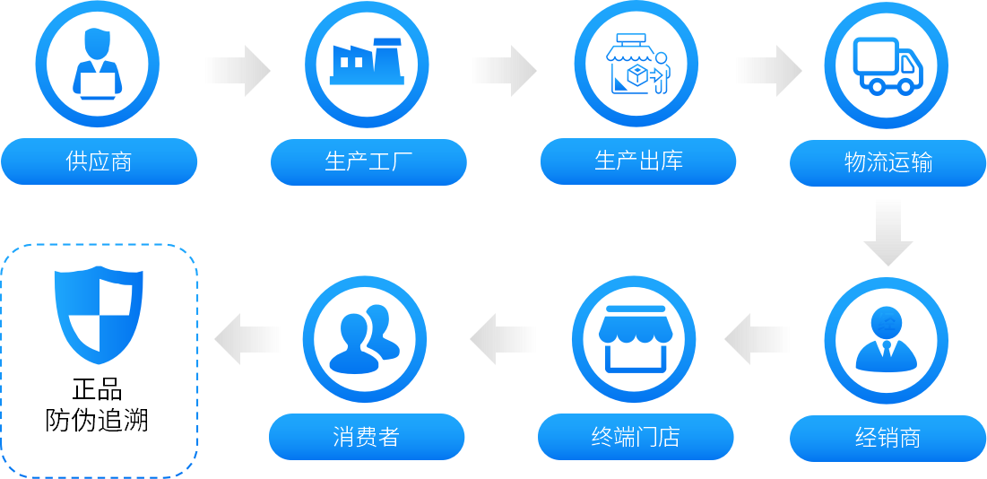 通过一物一码实现企业生产入库、销售出库,经销商采购入库、销售出库,终端进货入库、扫码查询等产品全生命周期管理,以实现质量管理、库存管理、窜货预警、决策支持等服务。