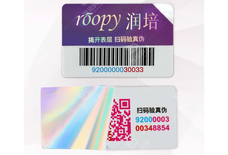 特征:二维码防伪标签正是因为它的防伪图案,美观信息储存量大,客户可以扫描获取产品生产信息、来源、企业信息,还可以扫描查询真伪.