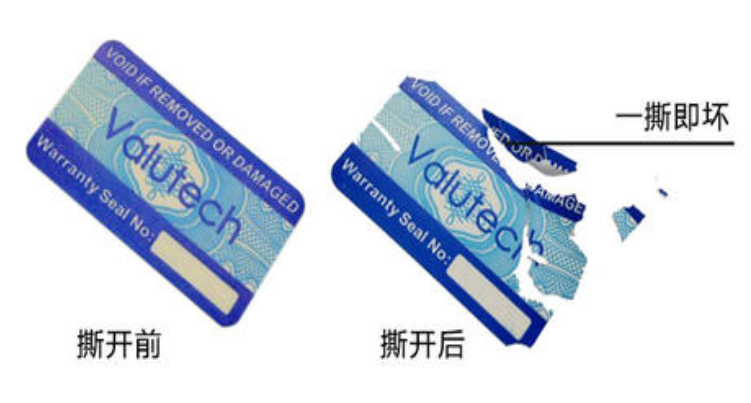 技术:易碎防伪标签主要是通过材质以及粘性来达到揭开及损的效果。
