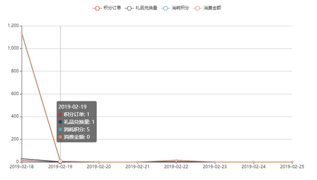 支持积分订单、礼品兑换量、消耗积分、消费金额等统计。